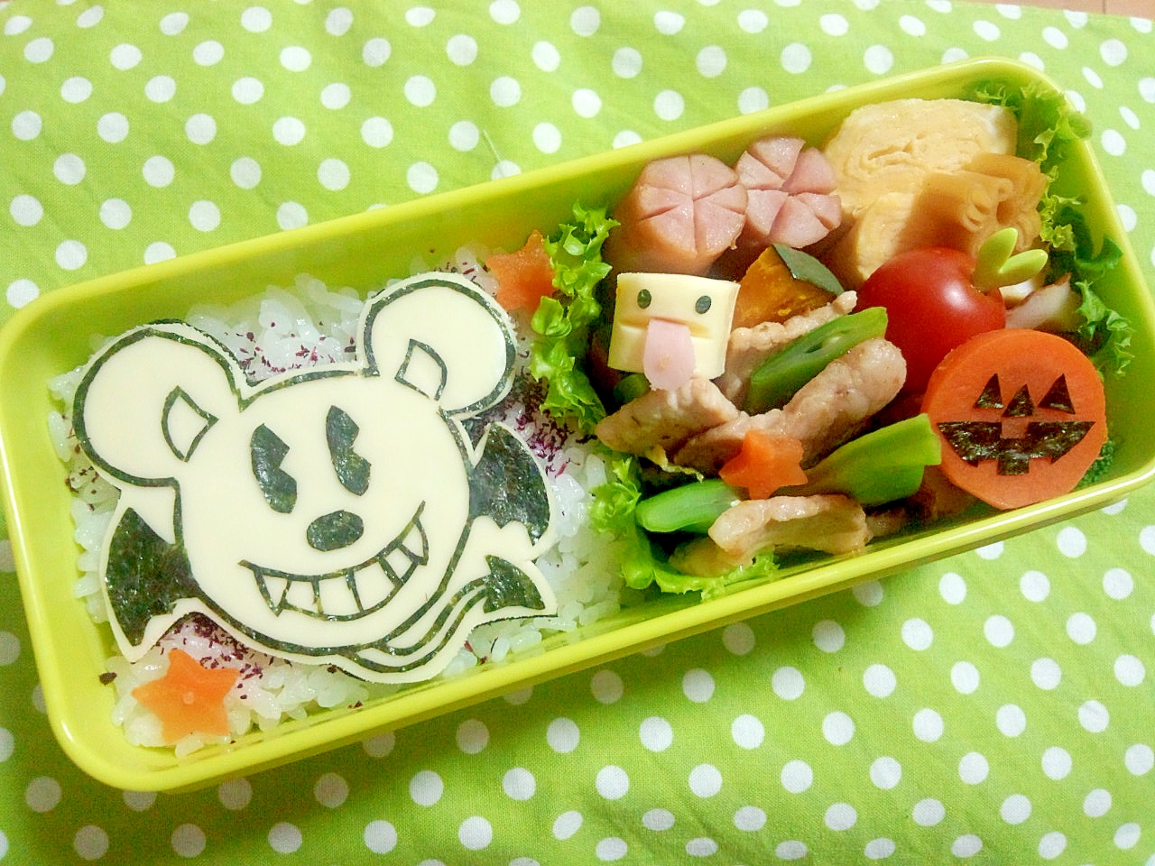 パパ弁当 ディズニーハロウィン ミッキー ミニー キャラ弁 海苔切り ちーちゃん キャラ弁